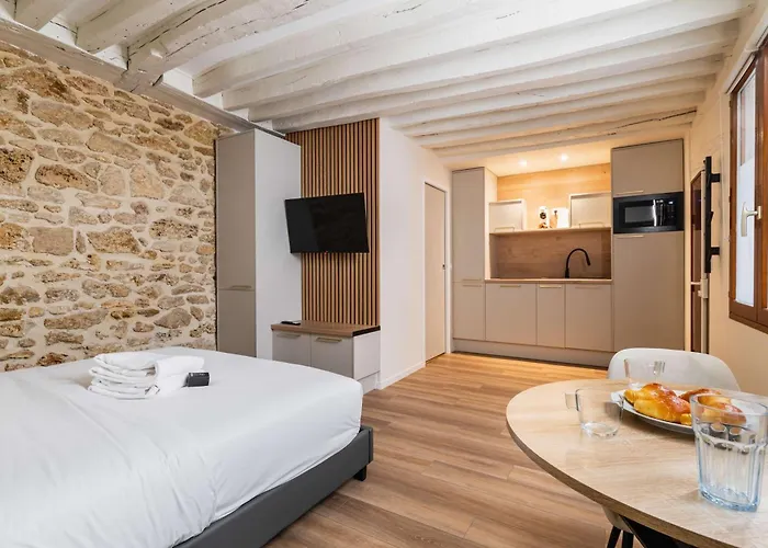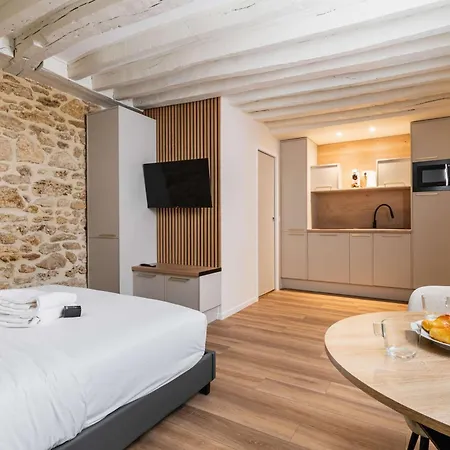 Studio Refait A Neuf Ile Saint Louis Paris 4 - 2P de 25 m² est niché dans le voisinage de "Le Marais" à Paris, à seulement 13 minutes de marche des Arènes de Lutèce. Les clients peuvent utiliser le Wi-Fi à des fins professionnelles et de loisirs.